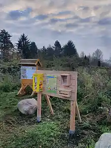 Mit dem Ziel mehr Blütenvielfalt für heimische Bestäuber-Insekten im Grünen Bremer Westen zu fördern, steht neben dem Insektenhotel im Eisblumenweg ein Bienenfutterautomat. Dieser umfunktionierte und upgecycelte Kaugummi-Automat ist bestückt mit Mehrweg-Samenkapseln, die je nach Jahreszeit mit regional angepassten Mischungen oder Krokusknollen zum Ziehen befüllt sind. Dazu enthalten die Kapseln eine Saatanleitung, die über die richtige Aussaat informiert. Solange der Vorrat reicht, gibt es jetzt im Winterhalbjahr Krokus-Kapseln für je 50 ct. Im Frühjahr wird der Automat wieder mit einer Regio-Wildblumenmischung aufgefüllt und ein weiterer Automat im kommenden Jahr im Gebiet In den Wischen aufgestellt.