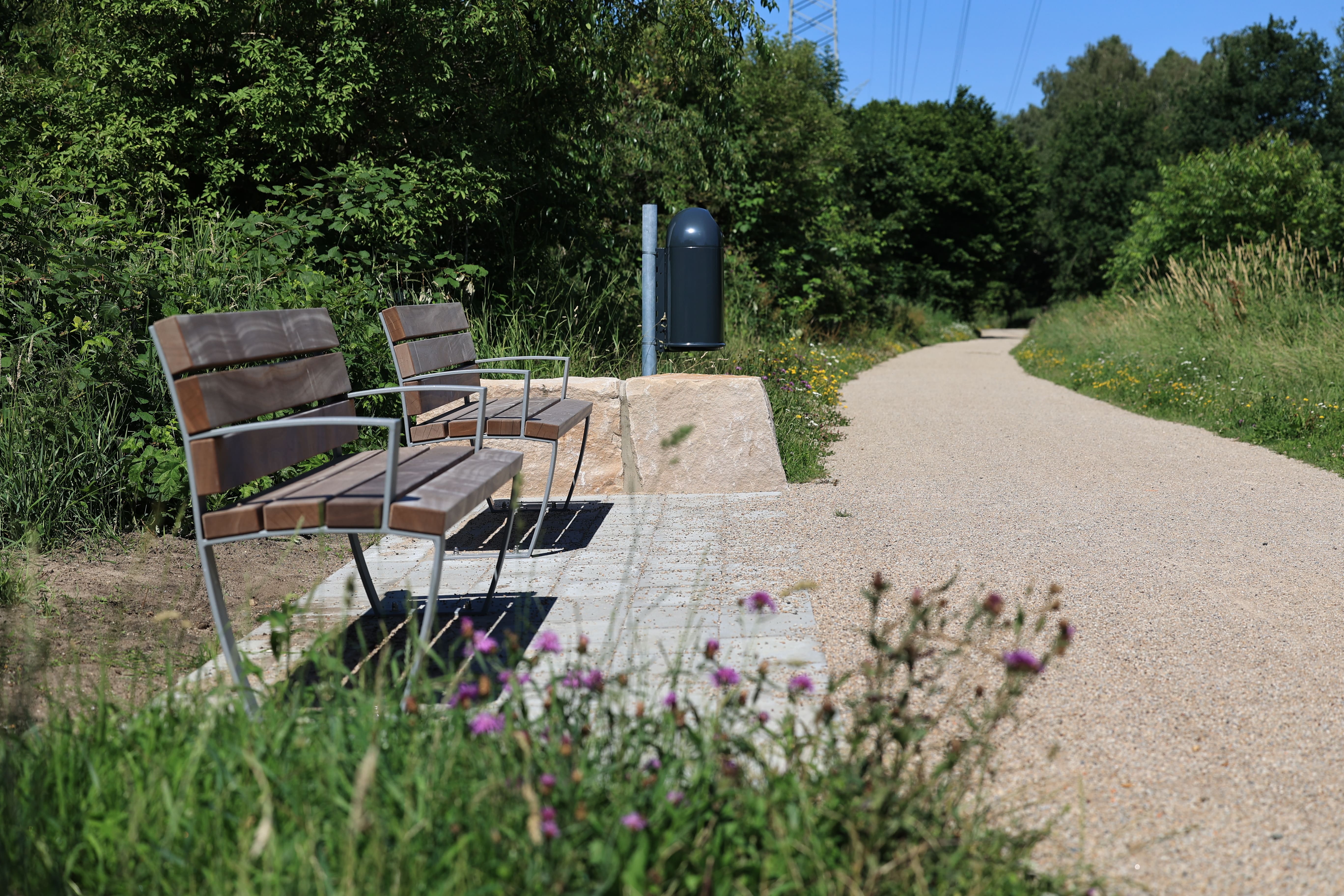 Liegebänke an der neuen Kompensationsfläche am Waller Marschweg