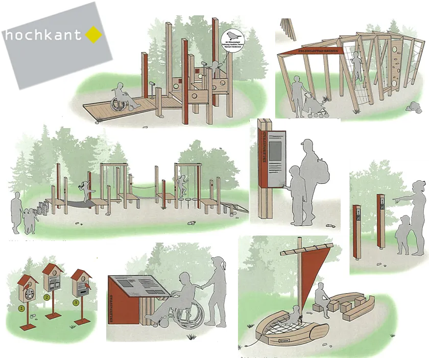 Zukünftige Erlebnisstationen als Entwurfskizzen (Büro Hochkant)