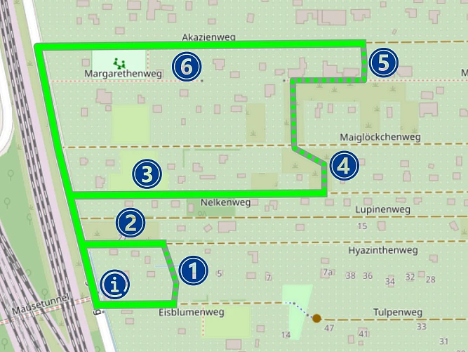 Auf dem 1,2 km langen Erlebnispfad gibt es viel Spannendes über die Tier- und Pflanzenwelt im Grünen Bremer Westen zu erfahren. Anhand von Informationstafeln und interaktiven Erlebnisstationen wird gezeigt, wie wertvoll, einzigartig und vielfältig die Natur im Kleingartengebiet ist. Spielerisch erfährt man Wissenswertes über Flora und Fauna (u.a. von den Fischen in den Fleeten über giftige, gebietsfremde Pflanzen am Wegesrand bis hin zu den vielen Insekten- und Säugetierarten in den Gärten), über das angrenzende Naturschutzgebiet Blockland sowie über die Besonderheiten der verschiedenen Gartenvögel. Dazu gibt es hilfreiche Tipps zum Erhalt der wertvollen Lebensräume und am Bienenfutterautomaten können sich alle, die jetzt motiviert sind, selbst etwas für die Artenvielfalt zu tun, mit Wildblumensamen eindecken. Auch Spiel und Spaß kommen entlang des Weges nicht zu kurz. Klettern auf dem Eingangsbogen, Balancieren auf dem Entdeckerpfad, Wippen im Vogelnest oder einen Blick von der Aussichtsplattform wagen? Der Landschaftsraum lässt sich aus ganz unterschiedlichen Perspektiven entdecken, Sitzgelegenheiten für ein gemütliches Picknick sind ebenfalls vorhanden.